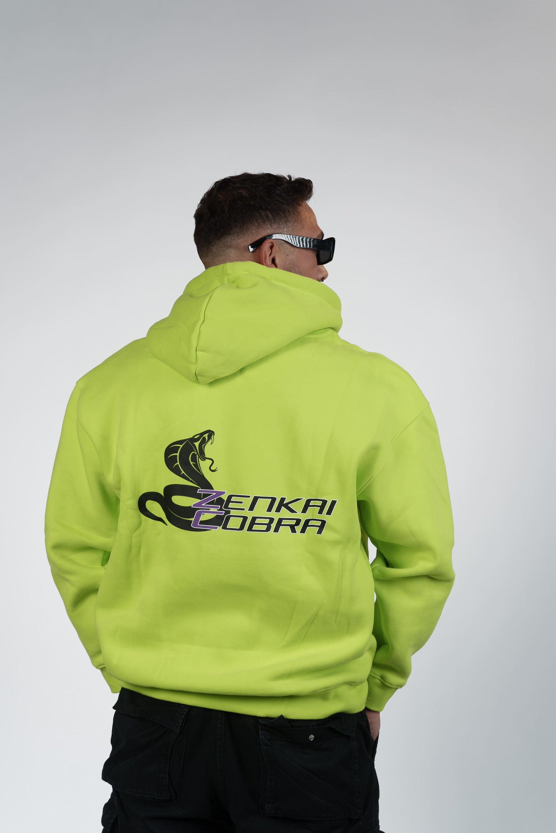 Realizzata in 100% cotone di alta qualità, questa felpa con cappuccio è pensata per offrirti il massimo del comfort e dello stile. Il design unisce linee pulite a dettagli di forte impatto: sul petto spicca la scritta "Crazy" in stampa puff (a rilievo), che dona texture e profondità al capo, mentre sul retro domina il logo Zenkai Cobra stampato in DTF, per una resa nitida, resistente e vibrante.
